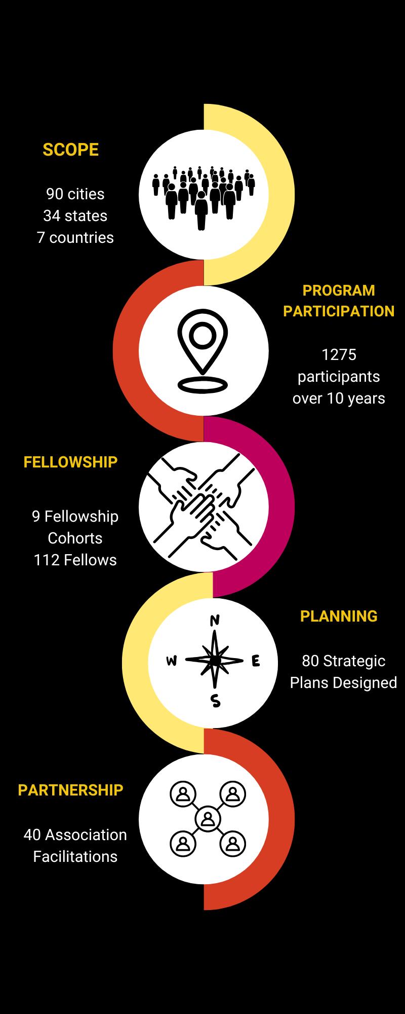 In the 10 years since we were founded, we’ve worked and partnered with organizations in over 190 cities, 33 states and 5 countries.
