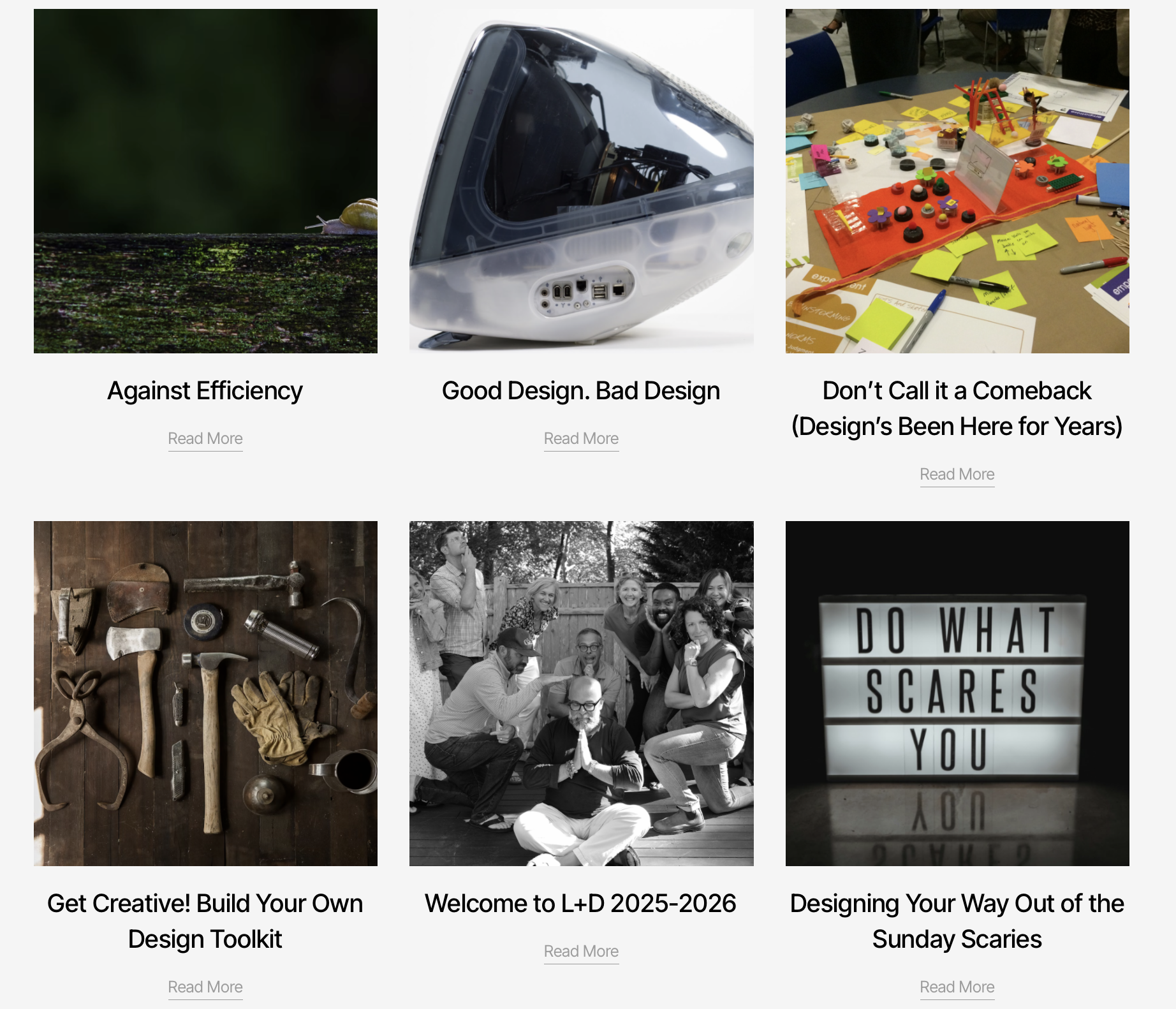 Leadership+Design explores the questions and challenges that matter most to contemporary school leaders. For more than a decade, we’ve published a weekly newsletter offering fresh insights, provocative ideas, and curious observations about teaching and learning, leadership, design, and the evolving future of schools—and of those who lead them. Each year, our newsletter centers on a unifying theme, such as Be More Human, What’s the Future?, The Power of Design, Living Curiously, and The Unspeakables in Schools.